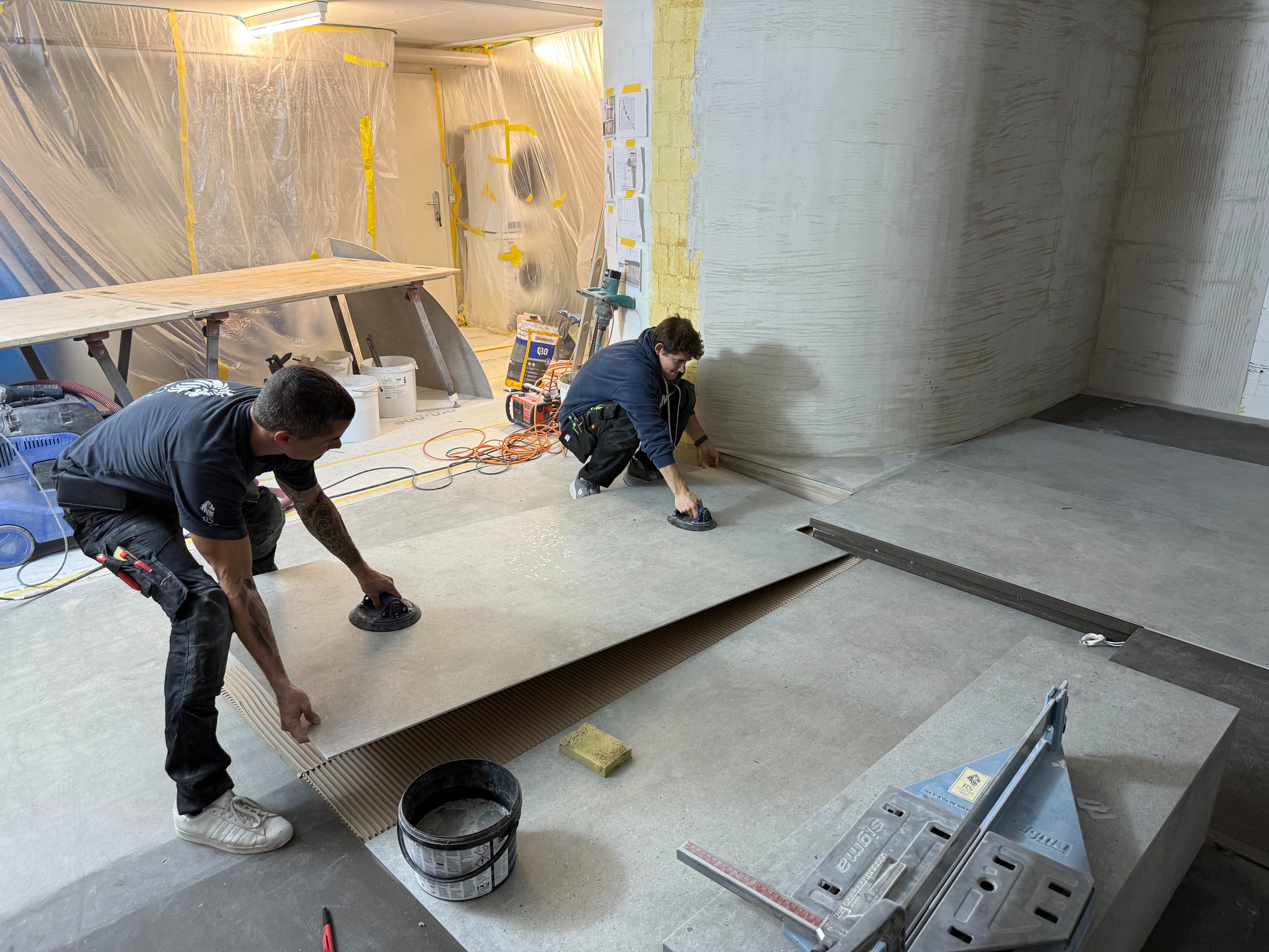 Großformatige Platten sind nicht nur optisch beeindruckend, sondern auch technisch anspruchsvoll. Schon kleinste Unebenheiten können zu Spannungen, Hohllagen oder unsauberen Kanten führen. Darum setzen wir auf modernste Ausrüstung und echte Spezialisten, die seit über 10 Jahren Erfahrung im Verlegen von Großformaten mitbringen. Mit unserem Know-how verwandeln wir hochwertige Platten in perfekt ausgeführte, fugenreduzierte Flächen – präzise, stabil und beeindruckend schön.